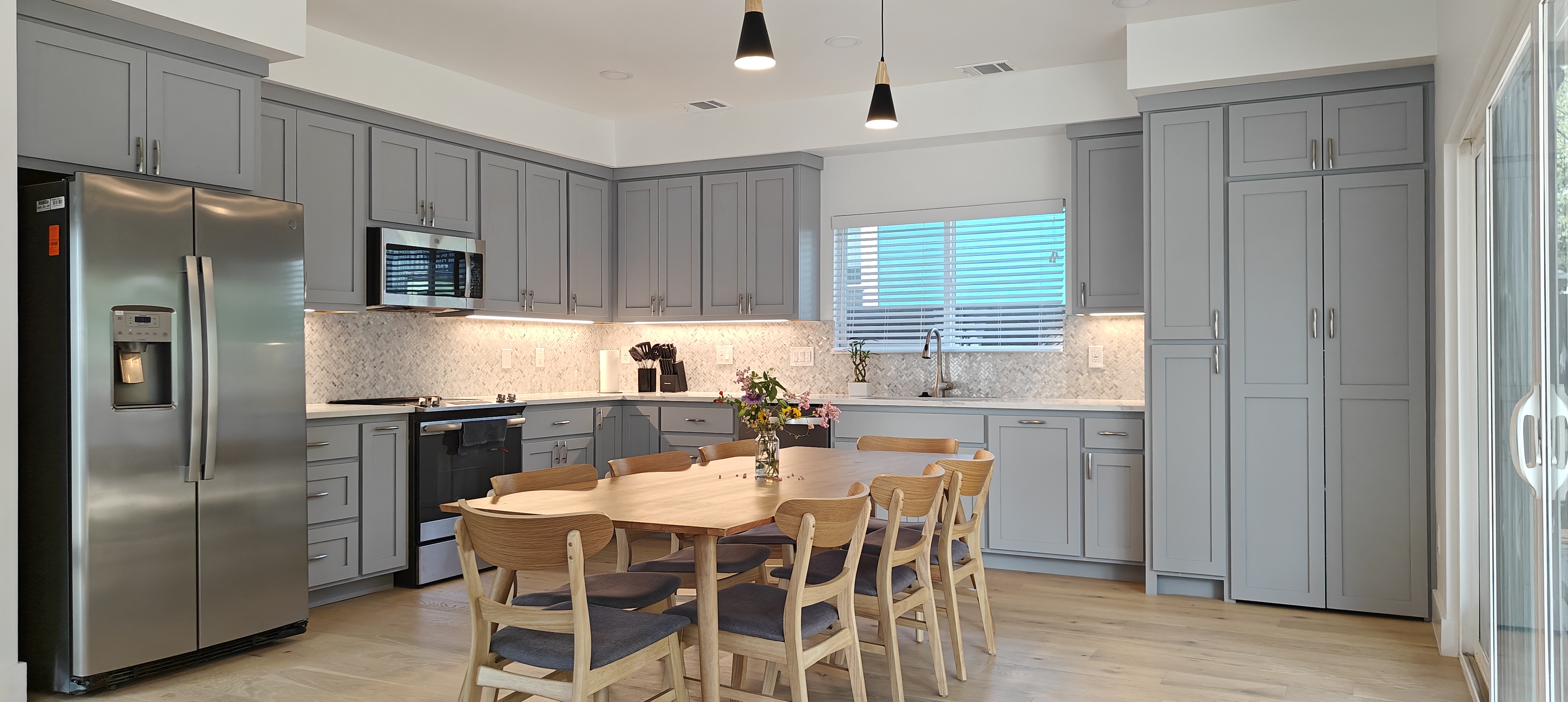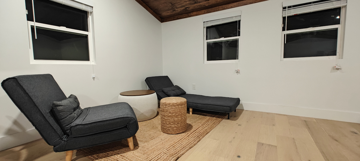 We have a large shared kitchen as well as an coworking office and a wrap around deck. Our coworking office is still under development, we are installing new furniture and office amenities like whiteboards and printers.